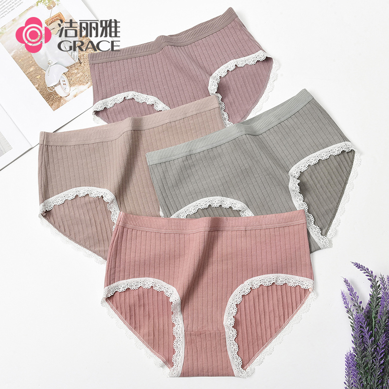 【产品名称:洁丽雅内裤女士纯棉性感蕾丝中腰夏季薄款女生大码短裤女全棉】