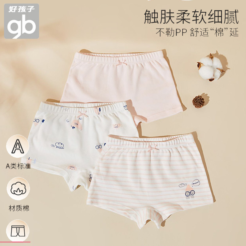 【产品名称:好孩子女童内裤平角纯棉100%全棉儿童夏季薄款中大童宝宝四角短裤】