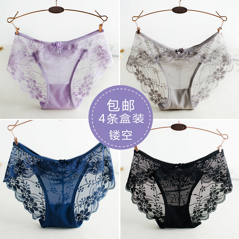 【产品名称:4条盒装女士蕾丝内裤全透明性感纯棉100%档低腰大码日系少女无痕】
