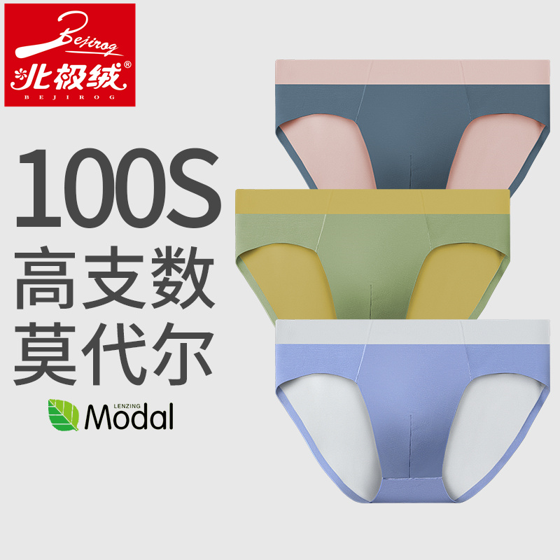 【产品名称:北极绒100支莫代尔内裤男双面零感无痕夏薄款舒适透气短裤三角裤】