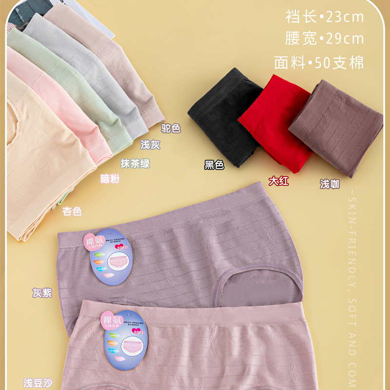 5条包邮 康依雅5283 螺纹兰精纤维 手感超柔软 无痕裤边 女士内裤