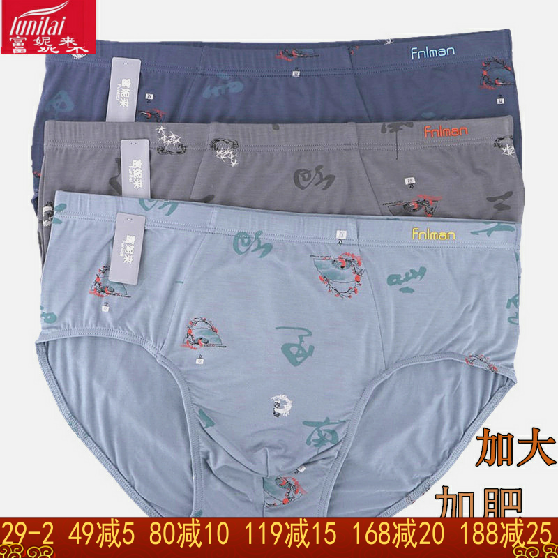 【产品名称:男士高腰三角内裤中老年人莫代尔棉肥佬宽松加肥大码透气三角短裤】