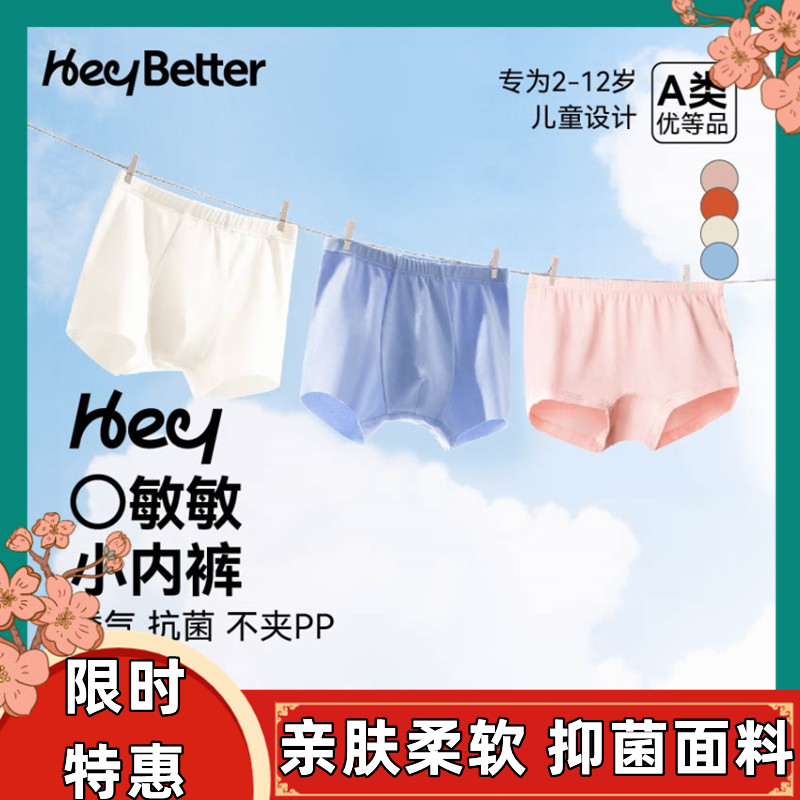 【产品名称:HeyBetter儿童内裤2条装透气天丝棉四角裤平角裤短裤裤头女童男童】