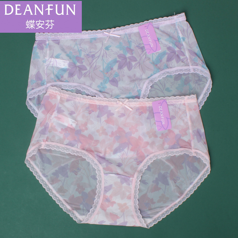 【产品名称:女士冰丝内裤透明锦纶轻柔透气碎花蝶安芬丝滑速干性感女平角短裤】