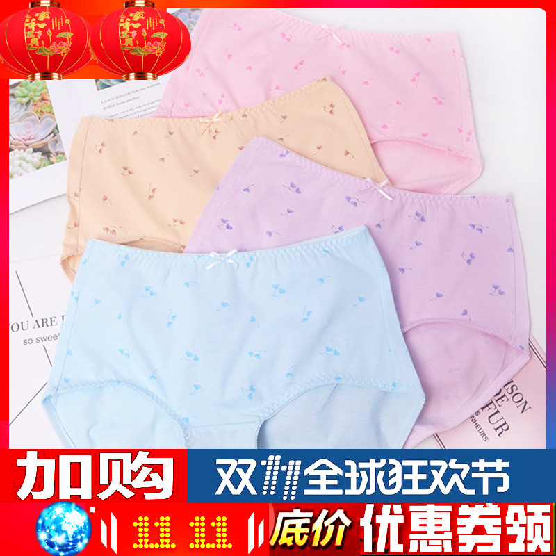 【产品名称:蝶安芬2021春夏4条盒装 纯棉印花大板高腰平角内裤全棉女士内裤】