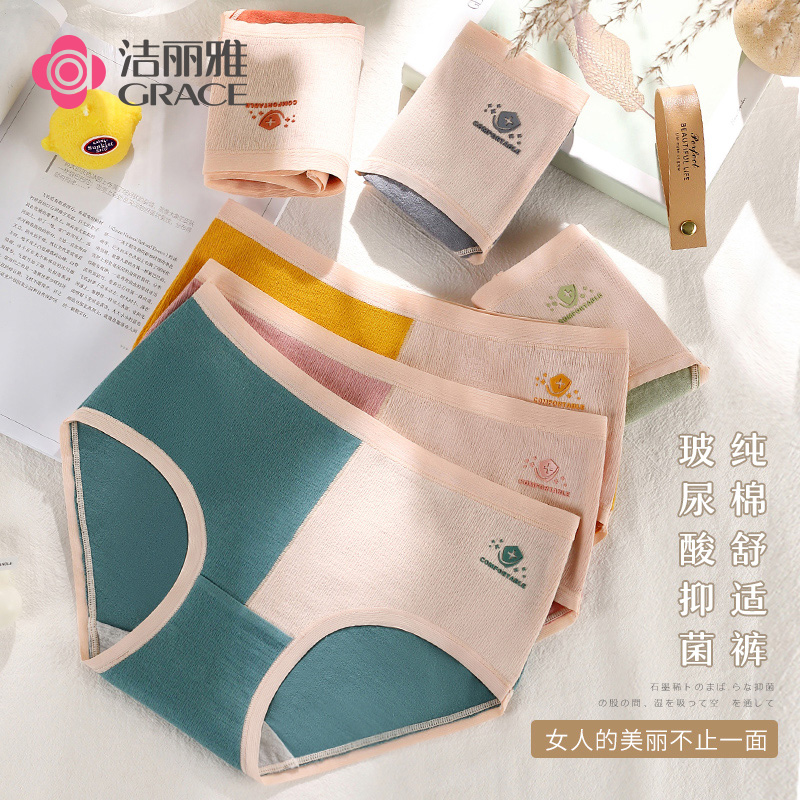 【产品名称:洁丽雅内裤女士中腰透气全纯棉抗菌裆无痕收腹女生夏季薄款三角裤】