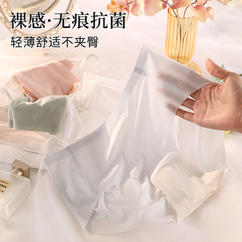 【产品名称:中腰无痕冰丝内裤女士不夹臀瑜伽健身运动专用不卷边包臀三角裤女】