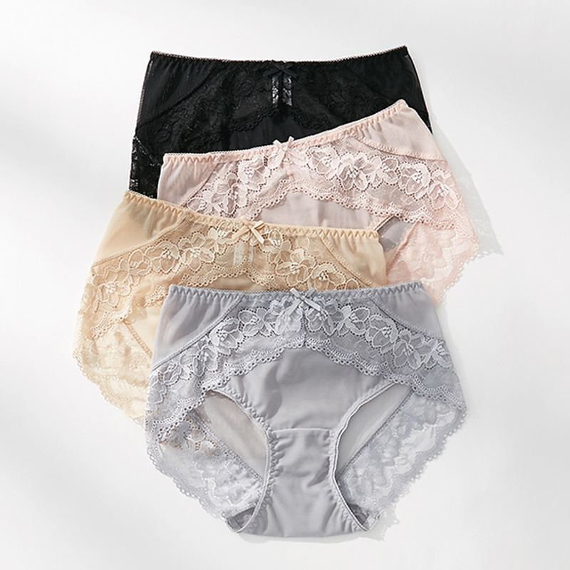 【产品名称:4条装性感内裤女蕾丝透明诱惑中腰收腹提臀无痕大码女士三角裤夏】