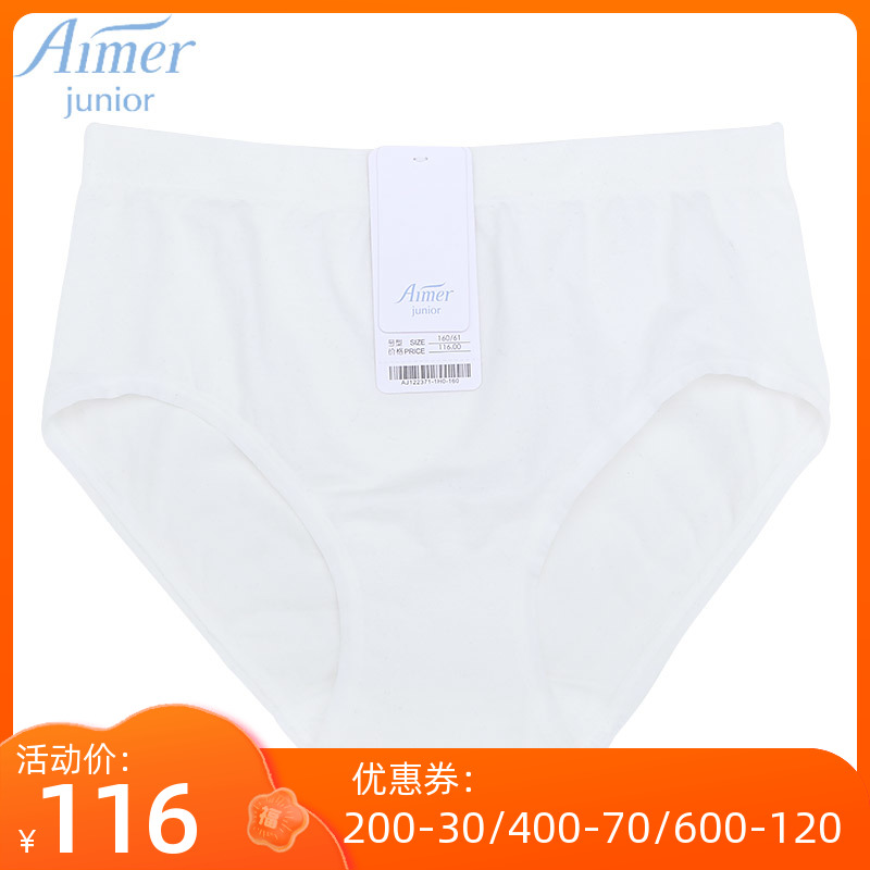 【产品名称:爱慕官方店儿童内裤 少女棉质白色无缝中腰三角裤AJ122371】
