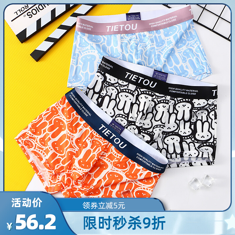【产品名称:松岛漫屋2023新款冰丝内裤男士夏季抗菌平角裤头男生可爱卡通四角】