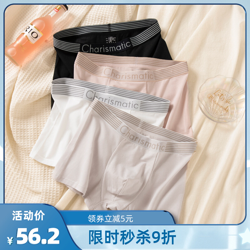 【产品名称:日本莫代尔棉男士内裤夏季舒适平角裤头中腰字母纯色男生四角裤衩】