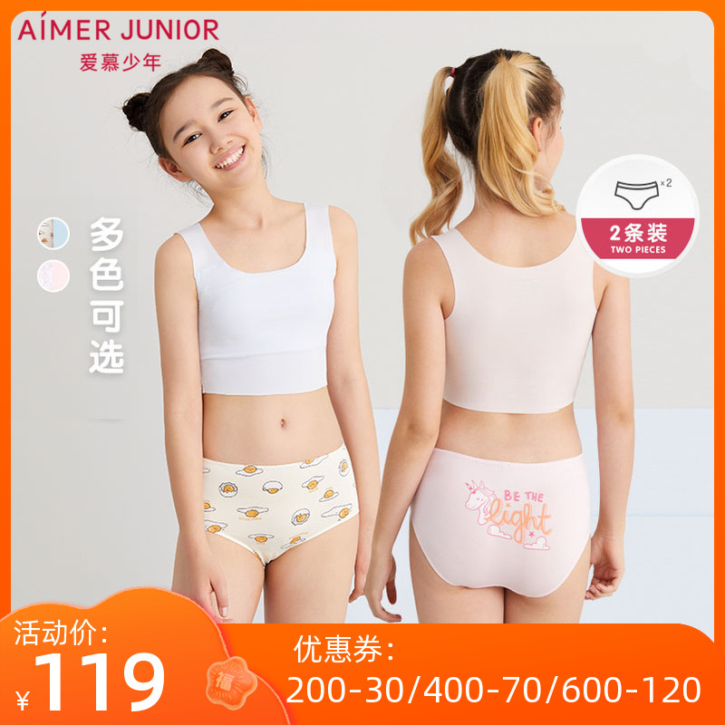 【产品名称:2条装 爱慕儿童新品官方正品女学生轻薄柔软中腰平角内裤】
