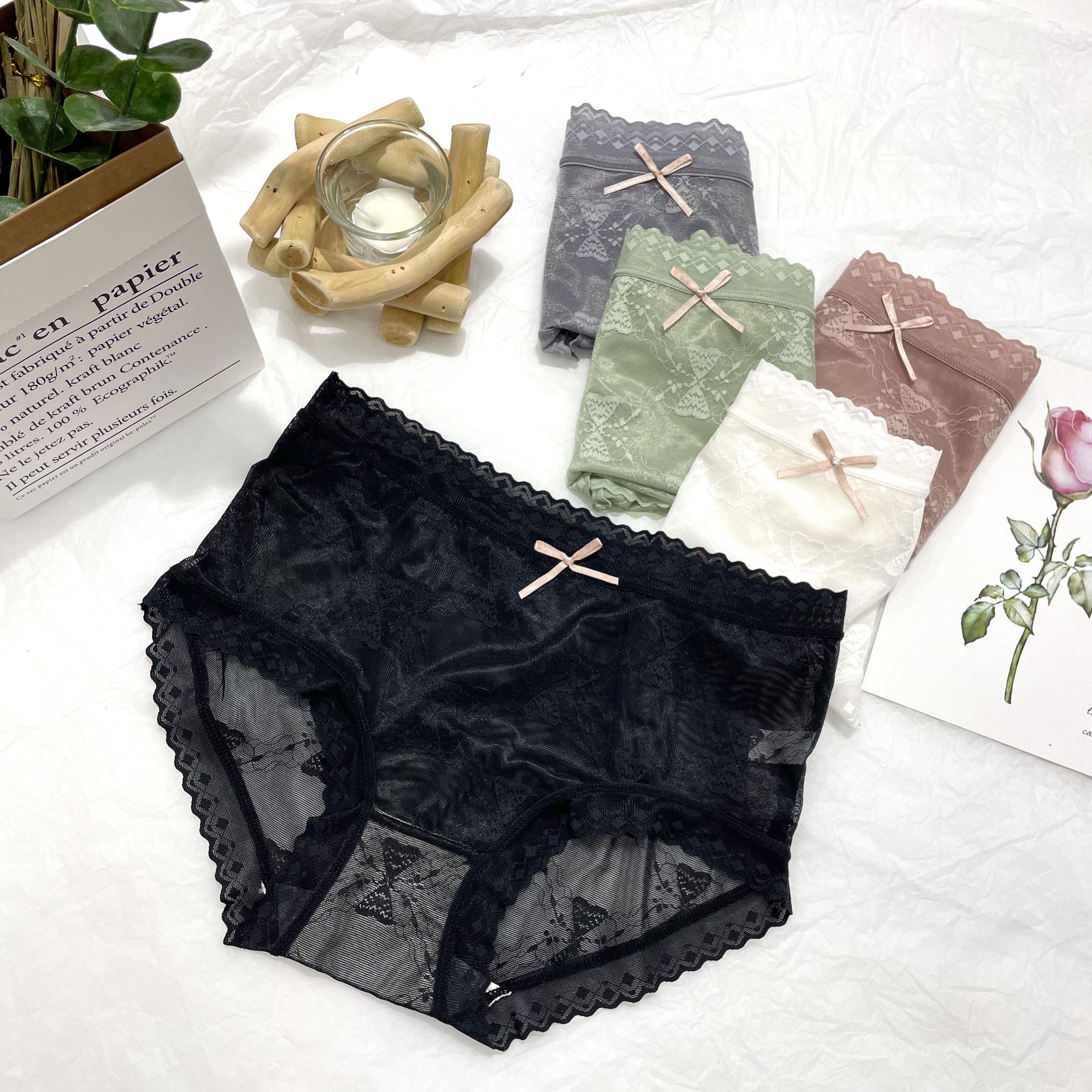 【产品名称:夏季性感网纱蕾丝透明内裤女抗菌内档速干透气中低腰女士三角短裤】