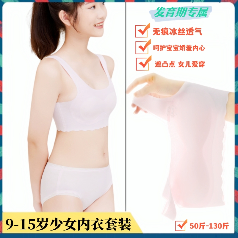 【产品名称:12岁女孩女童内衣发育期10一14岁少女文胸内裤套装无痕冰丝背心】