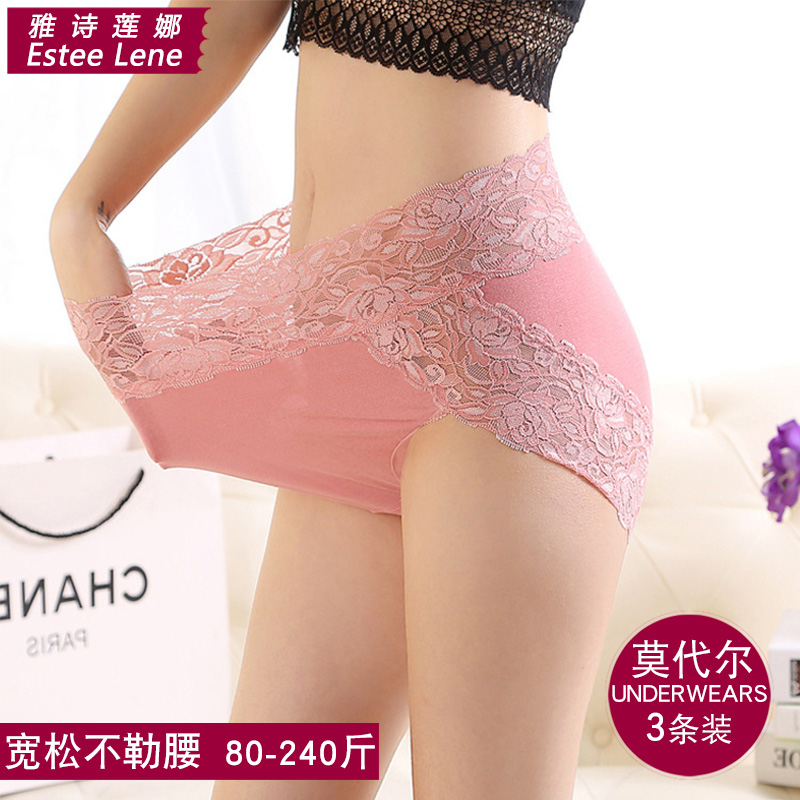【产品名称:雅诗莲娜 高腰性感莫代尔蕾丝边女士内裤胖mm200斤加肥加大特大码】