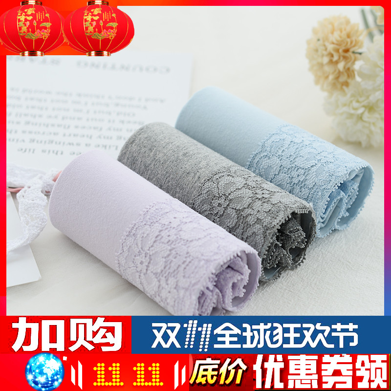 【产品名称:3条装包邮简约纯棉女士内裤高腰蕾丝 全棉女式日系底裤舒适三角裤】