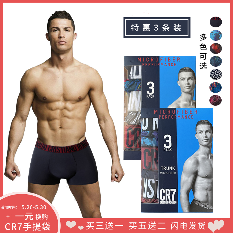 【产品名称:C罗3条装cr7男士内裤平角冰丝无痕大码中腰男生四角短裤头秋季】