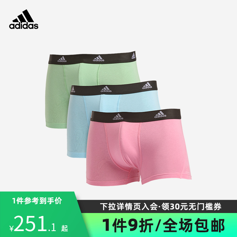 【产品名称:adidas/阿迪达斯男士速干舒适弹力棉质防摩擦结构平角内裤男3条装】