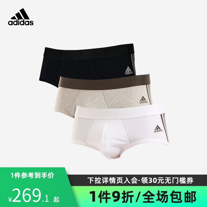 【产品名称:adidas/阿迪达斯男士棉质舒适弹力撞色条纹三角裤内裤男款3 条装】