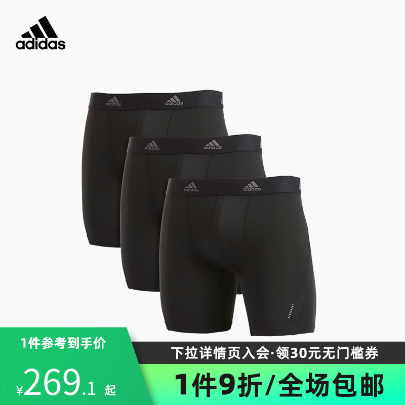 【产品名称:adidas/阿迪达斯男士速干弹力吸湿排汗凉感长款运动平角内裤3条装】