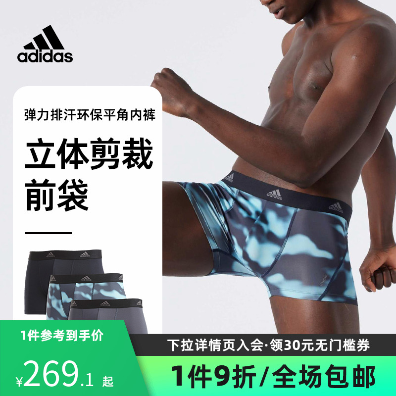 【产品名称:adidas/阿迪达斯男士吸湿排汗裤衩男内裤运动平角内裤男四角3条装】