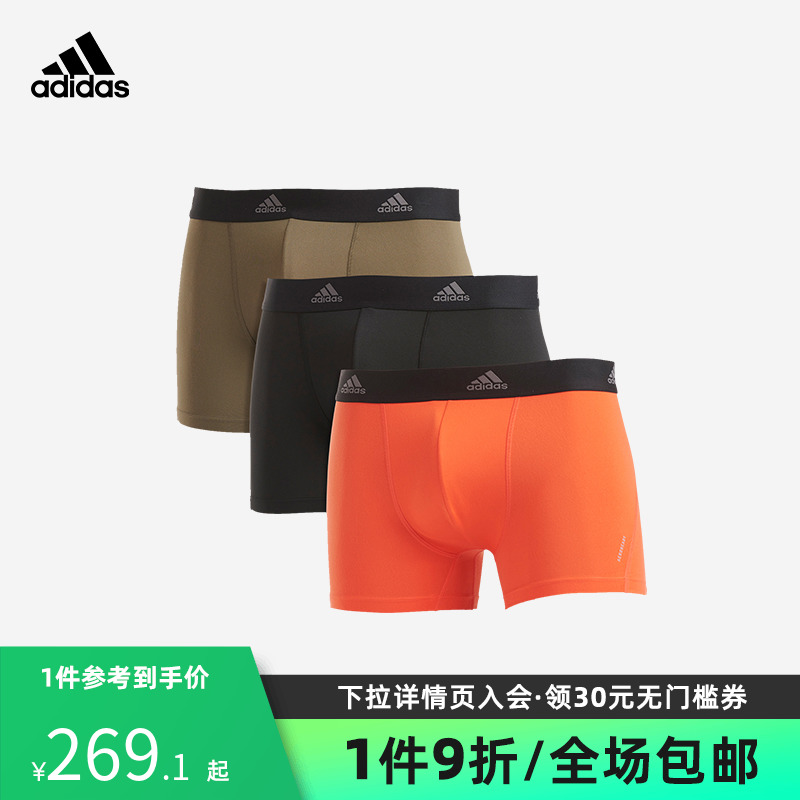 【产品名称:adidas/阿迪达斯男士透气凉感运动平角内裤四角裤男生潮流裤头3条】