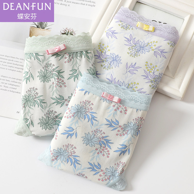 【产品名称:蝶安芬女士内裤女中腰平角莫代尔性感时尚柔软舒适透气蕾丝边裤头】