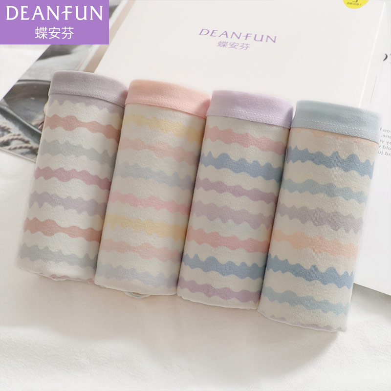【产品名称:蝶安芬女士内裤女中腰平角性感时尚清新可爱少女纯棉裆条纹短裤头】