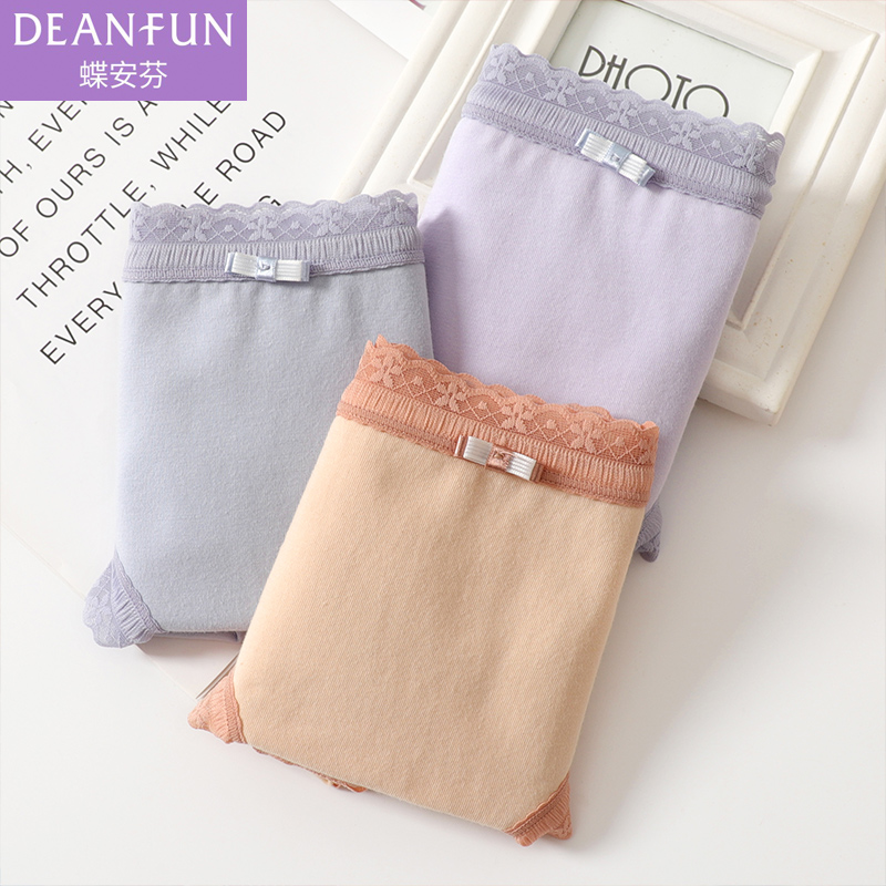 【产品名称:蝶安芬女士内裤女中腰平角纯棉裆性感时尚蕾丝边舒适透气简约裤头】