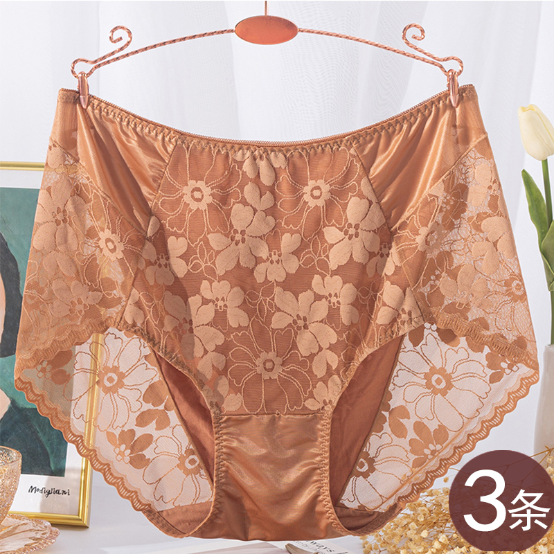 【产品名称:胖mm性感高腰内裤女蕾丝网纱薄女士莫代尔无痕大码中年妈妈三角裤】
