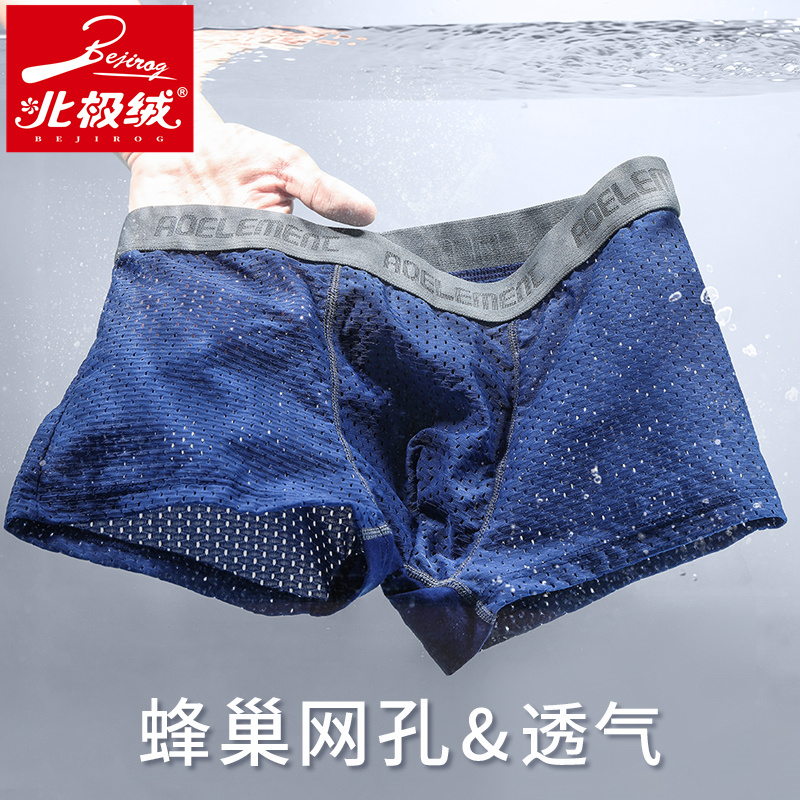 【产品名称:北极绒男士内裤男平角裤夏季冰丝透气四角裤衩莫代尔网眼短裤头】
