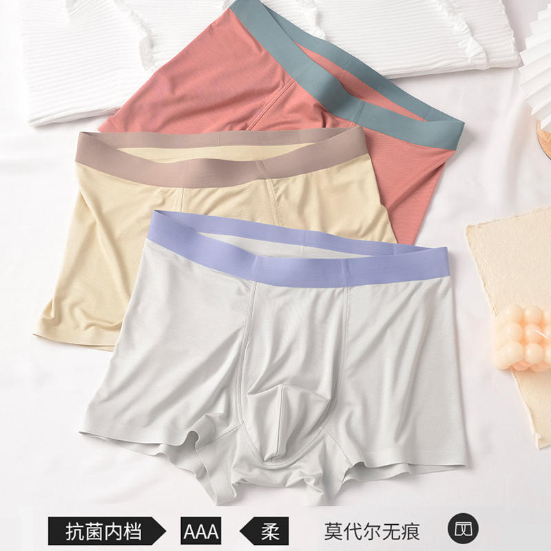 【产品名称:男士莫代尔内裤夏季款舒适透气四角裤头日系抗菌中腰无痕平角内裤】