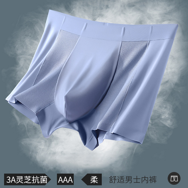 【产品名称:男士莫代尔内裤80支灵芝抗菌四角裤网孔空调裤中腰无痕男士平角裤】