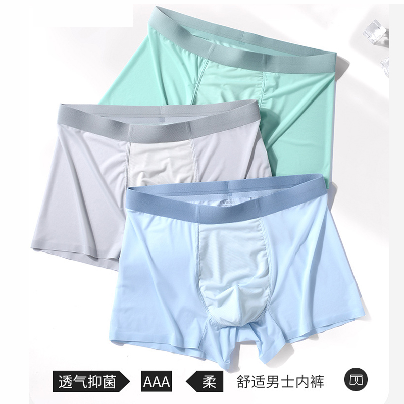 【产品名称:男士冰丝内裤夏季薄款速干平角内裤中腰纯色无痕冰霜面膜四角裤头】