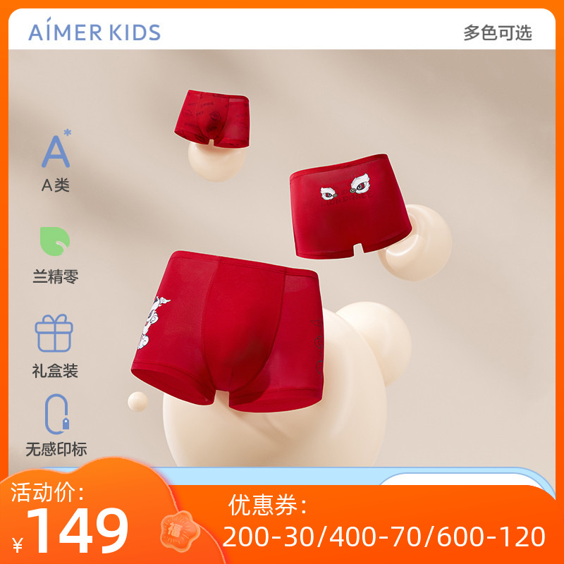 【产品名称:3条装 爱慕儿童男女孩棉底裆平角裤红品新年本命年A类礼盒装内裤】