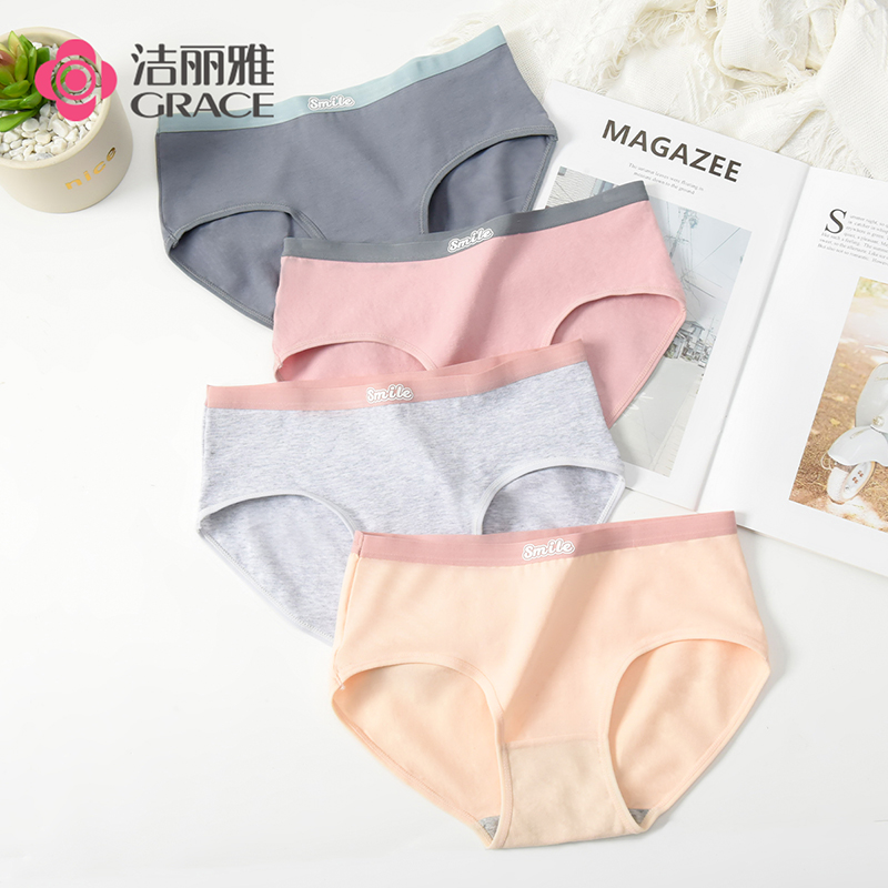 【产品名称:grace/洁丽雅4条装中腰纯棉女士内裤纯棉底裆简约内裤女】