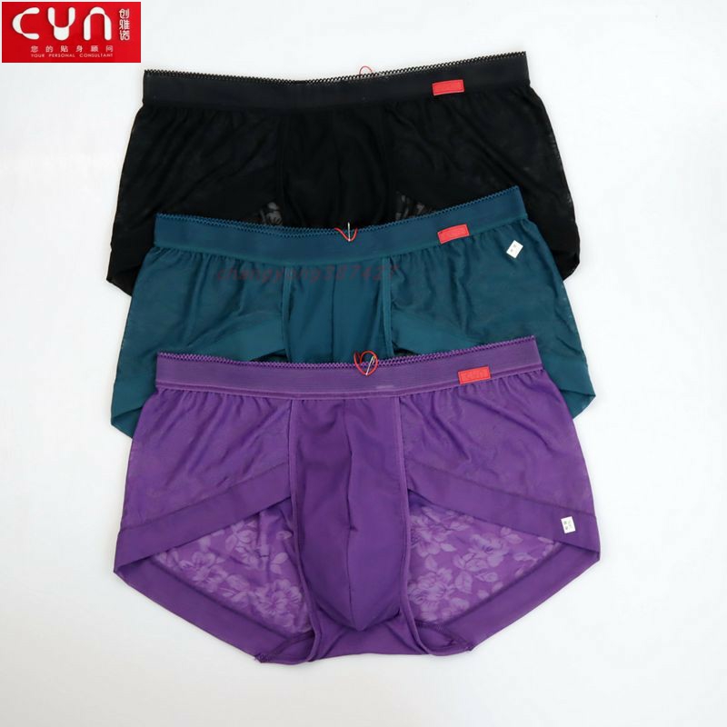【产品名称:2条价创雅诺锦纶冰丝提花男内裤86009网纱性感舒适透气男士平角裤】