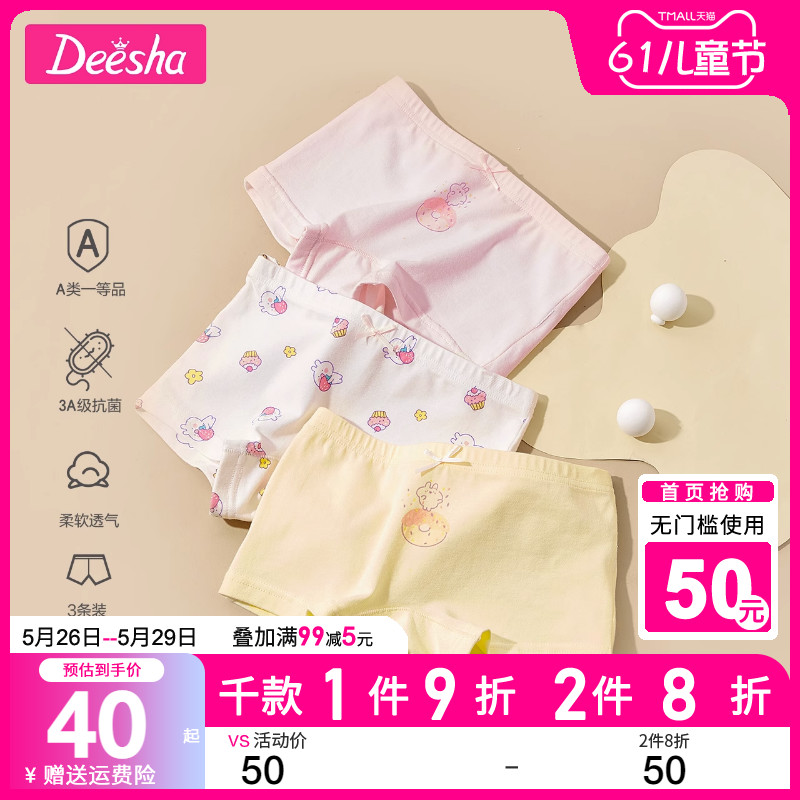 【产品名称:笛莎女童秋冬季新款中大童小女孩儿童纯棉平角内裤3条装春秋迪莎】