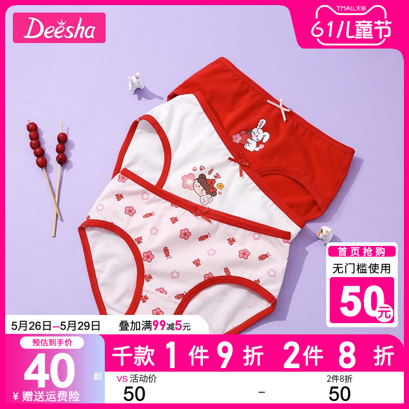 【产品名称:笛莎童装女童小内裤女宝宝小童新款可爱印花平角内裤纯棉3条装】