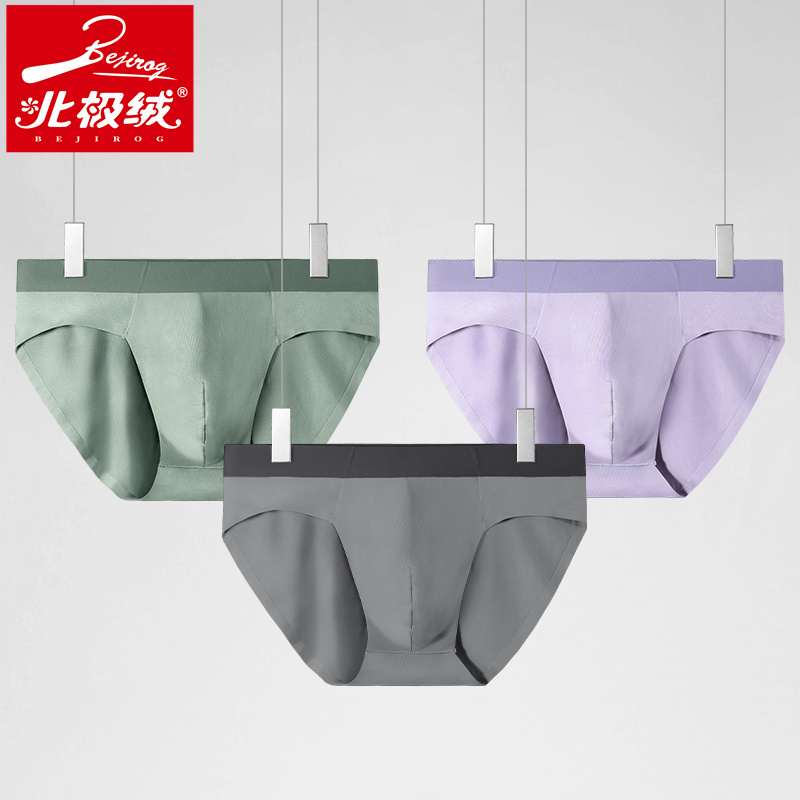 【产品名称:北极绒3条装男士内裤50支莫代尔无痕纯色性感夏季薄款透气三角裤】