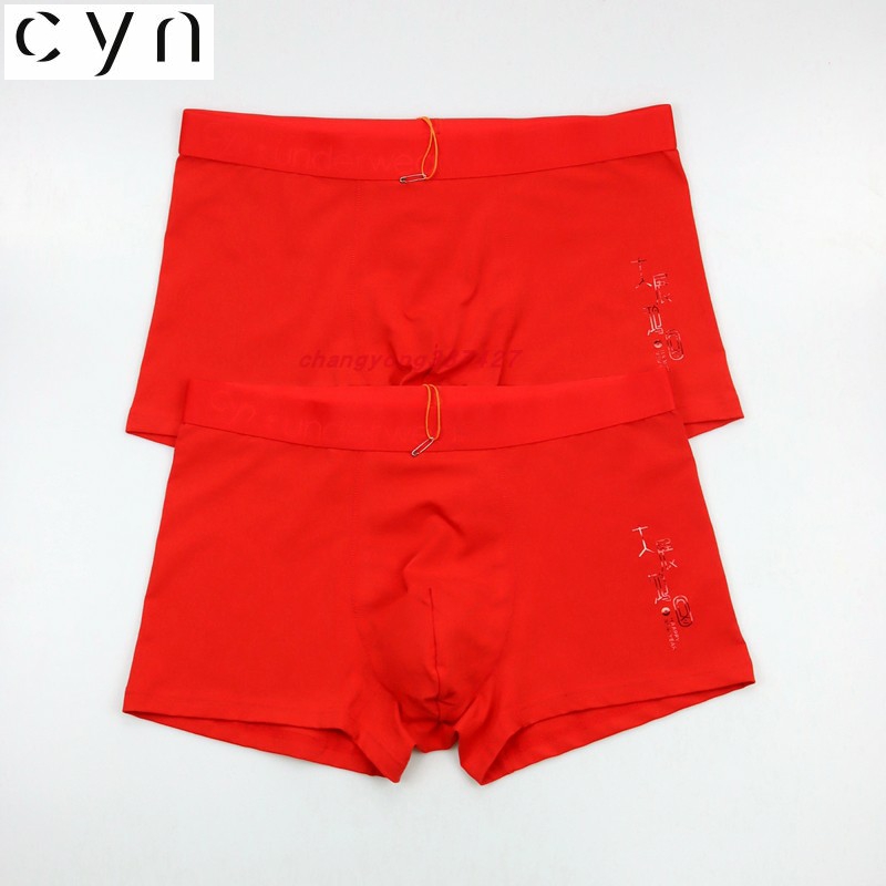 【产品名称:2条装创雅诺超细柔弹棉本命年红色男内裤82134宽腰边鸿运男平角裤】
