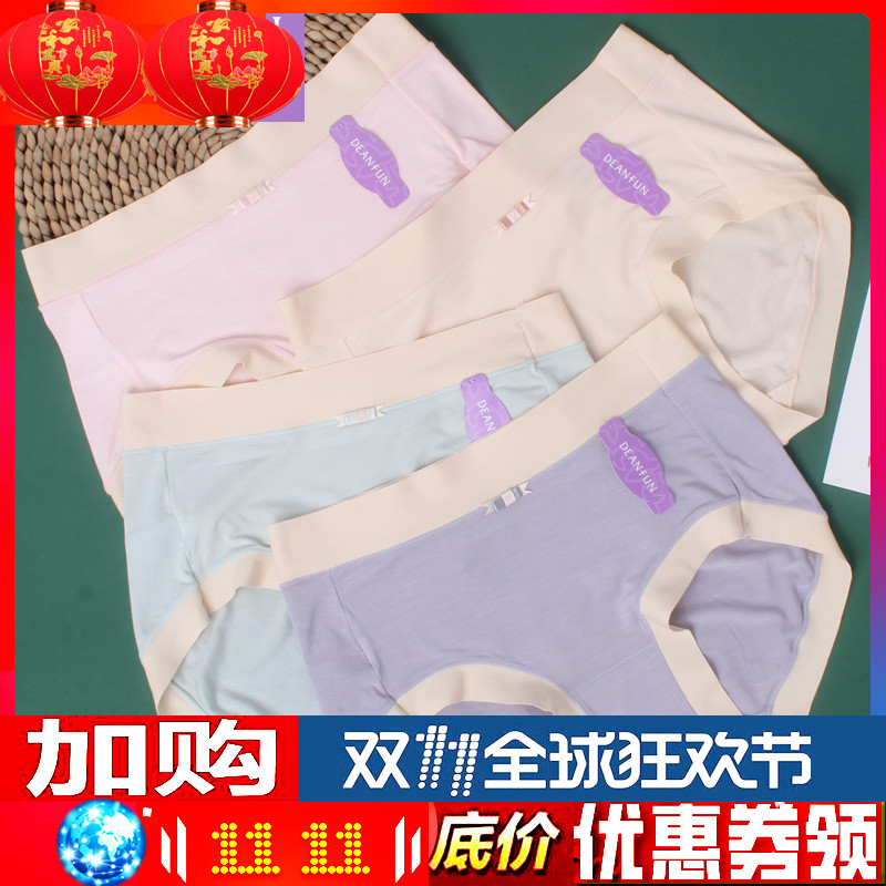 【产品名称:4条新品蝶安芬女士内裤13524 中腰透气天竹女青年宽边平角裤】