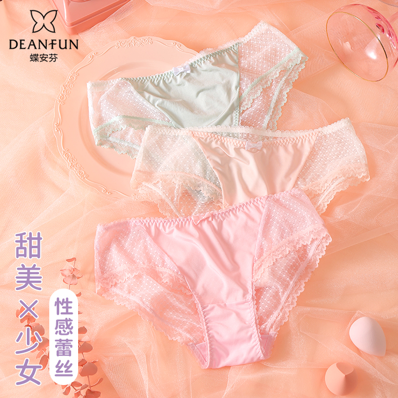 【产品名称:蝶安芬性感内裤女士纯棉裆抗菌中腰蕾丝春夏薄款火辣透气短裤纯欲】