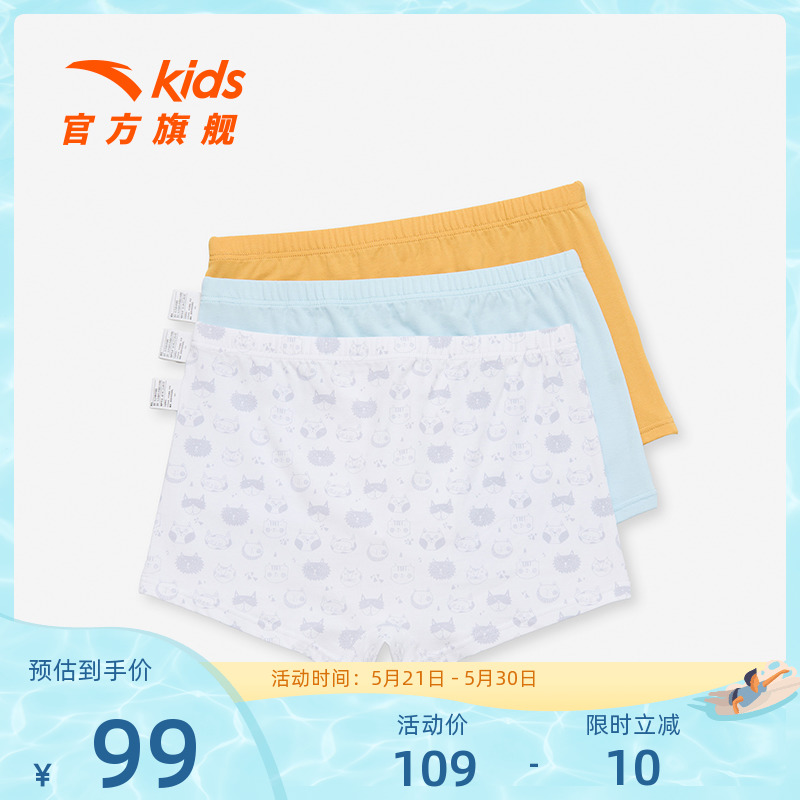 【产品名称:安踏儿童内裤2023新款男童平角内裤四角裤小学生女童3条装棉短裤】