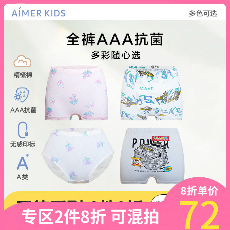 【产品名称:爱慕儿童正品男童女童精梳棉3A无骨缝制中高腰三角平角内裤A类】