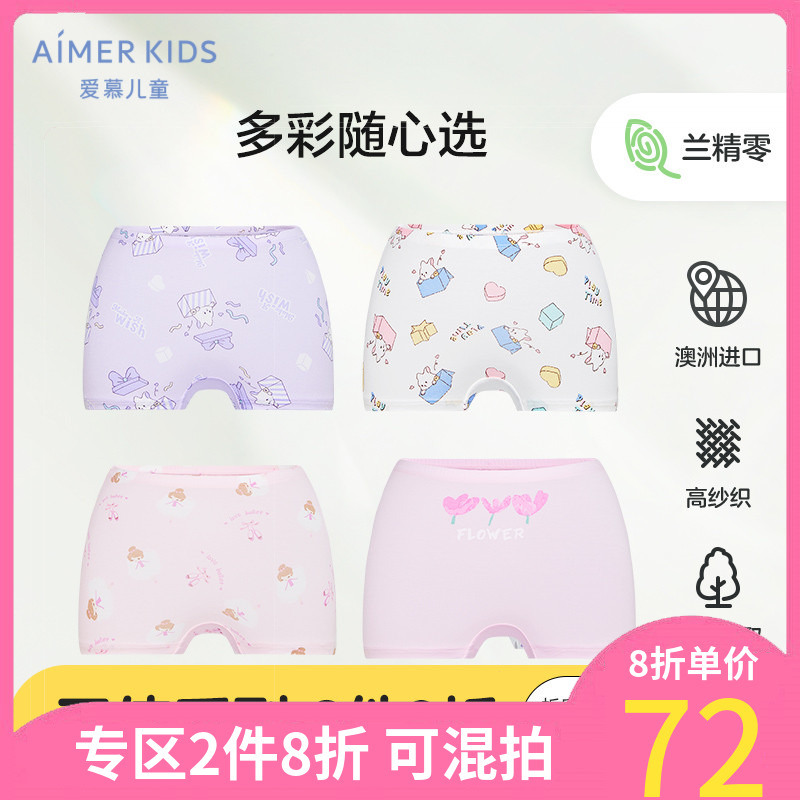 【产品名称:爱慕儿童正品女童孩莫代尔透气薄款0碳卡通可爱三件平角内裤】
