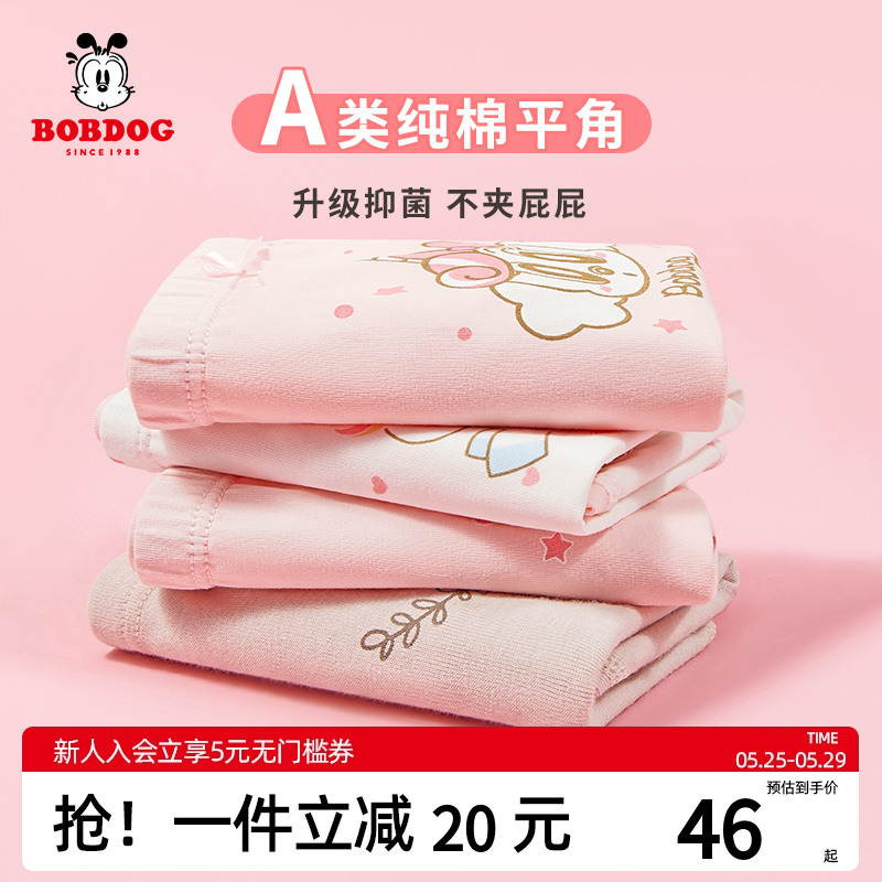 【产品名称:巴布豆女童内裤儿童纯棉平角裤男童全棉宝宝四角短裤抗菌不夹屁屁】