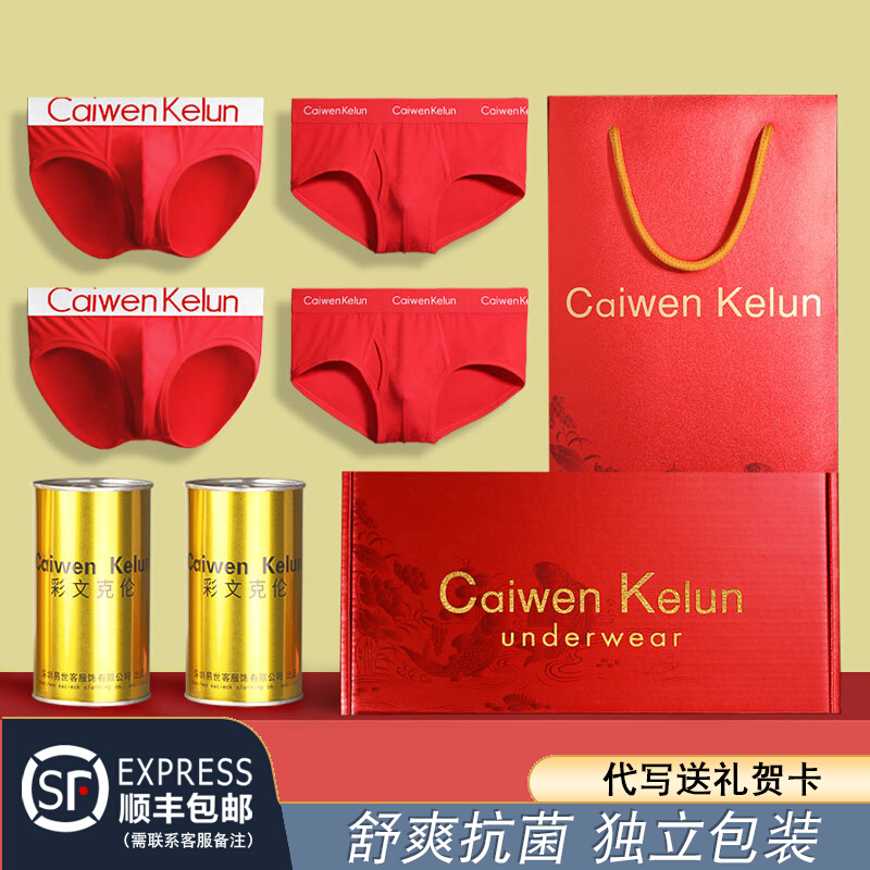 【产品名称:男士内裤透气纯棉三角裤头本命年大红色薄款冰丝短裤衩ckρΙ礼盒】