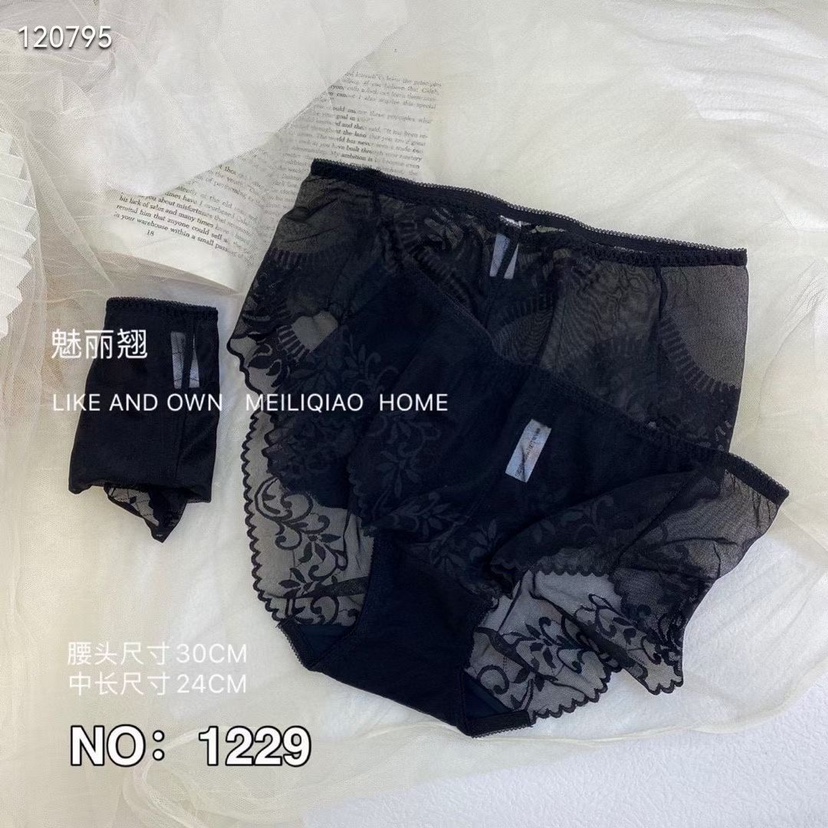 【产品名称:魅丽翘3条盒装1229中腰黑色性感蕾丝网纱彩棉裆三角内裤头女士】