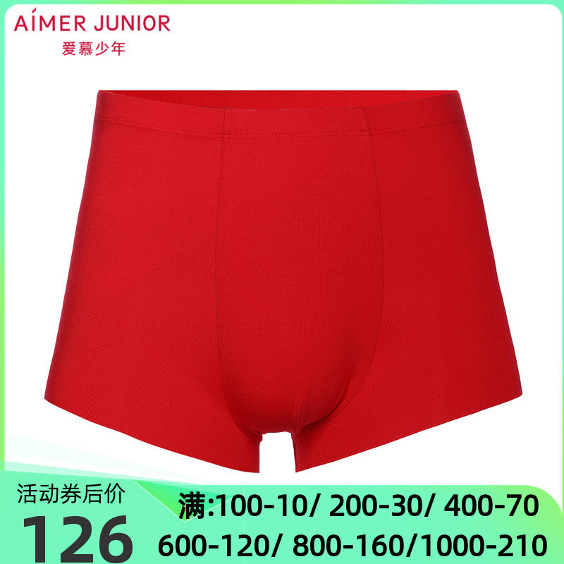 【产品名称:爱慕儿童正品大男童青少年红色新年本命年中腰平角内裤AJ2232712】